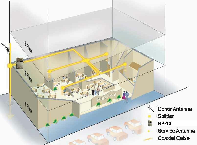 Также приведен пример распределенной системы (т.е. системы состоящей из нескольких сервисных антенн) для обеспечения GSM связи в большом по площади помещении. Рисунок 1 показывает характерную ситуацию для больших городов, когда происходит отражение полезного сигнала от высотных зданий. При этом прием на первых этажах даже при незначительном удалении от базовой передающей станции оператора является неудовлетворительным или отсутствует вовсе. ![]() Рисунок 1. Отражение сигнала от высотных зданий На рисунке 2 изображена стандартная ситуация связанная с существенным удалением базовой станции оператора от места где необходимо обеспечить связь. Такая проблема часто возникает в загородных домах и дачах. ![]() Рисунок 2. Объект удаленный от базовой станции (загородный дом) Рисунок 3 отражает самую распространенную проблему - отсутствие связи в подвальных и полуподвальных помещениях. Это связано не только подземным характером размещения таких помещений, но и с существенным ослаблением сигнала при прохождении сквозь бетонные перекрытия полов(потолков). ![]() Рисунок 3. Пример подвального помещения На рисунке 4 показан пример применения репитера Remotek RP-12 в здании со сложной структурой. Для обеспечения требуемого качества сигнала были использованы четыре сервисные антены, равномерно распределенные по все площади помещения. ![]() Рисунок 4. Здание с большой площадью и межкомнатными перекрытиями Обратите также внимание на наличие перегородок в вашем помещении. Даже если общая площадь на которой необходимо обеспечить связи не велика (15м x 15м), но, например, посередине стена делит ваше помещение на две комнаты, то в зависимости от типа и толщины перекрытий может возникнуть необходимость установки дополнительных антенн (в каждую комнату своя антенна). По типу перекрытия можно разделить на следующие: Здесь перекрытия приведены в порядке уменьшения ослабляющего воздействия на полезный сигнал оператора. То есть деревянные перекрытия ослабляют сигнал меньше чем, например, кирпичные. Однако, следует также учитывать толщину перекрытия. |
